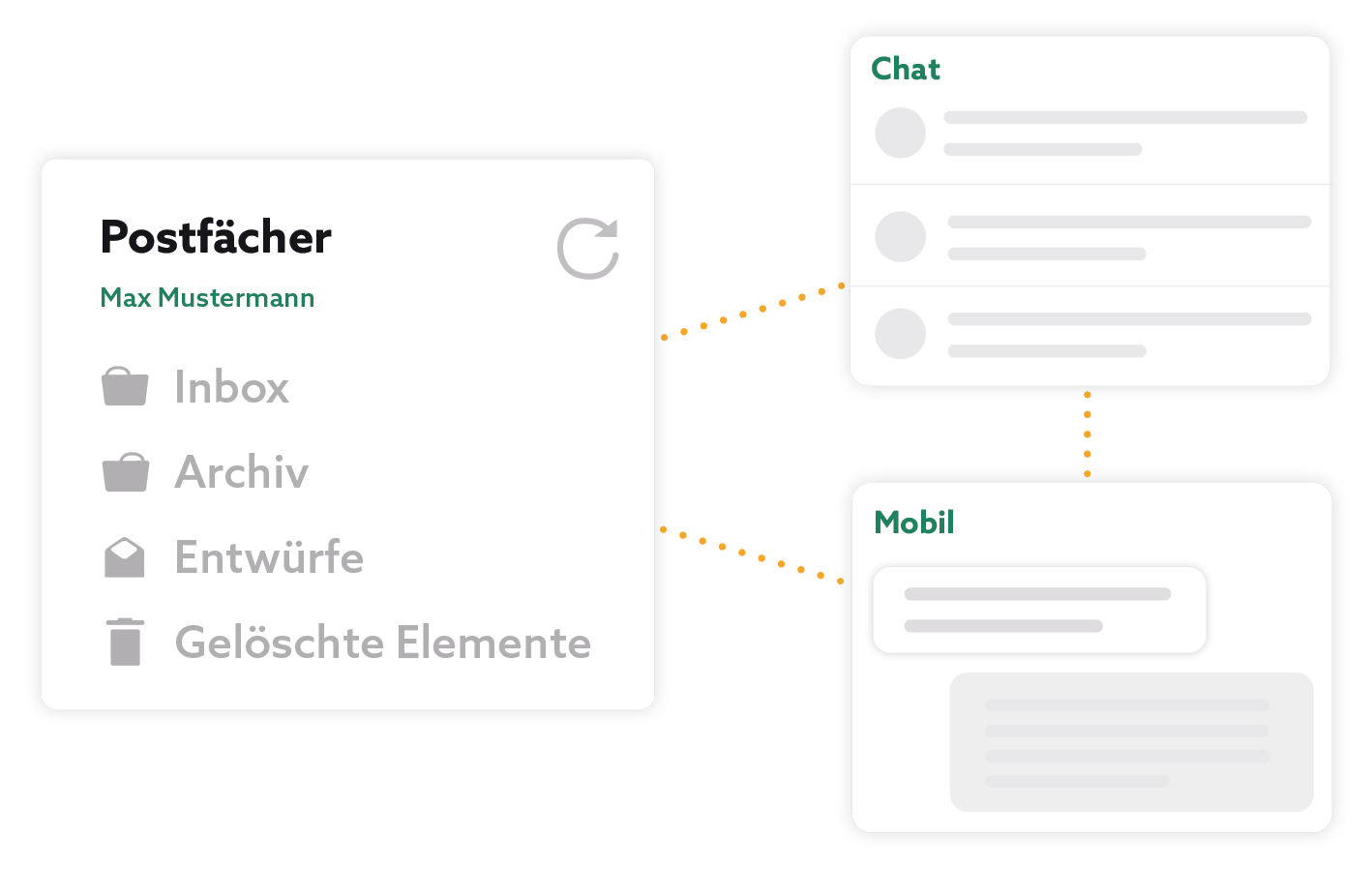 Chat, E-Mail-Client, Projektfeeds, mobile Synchronisation