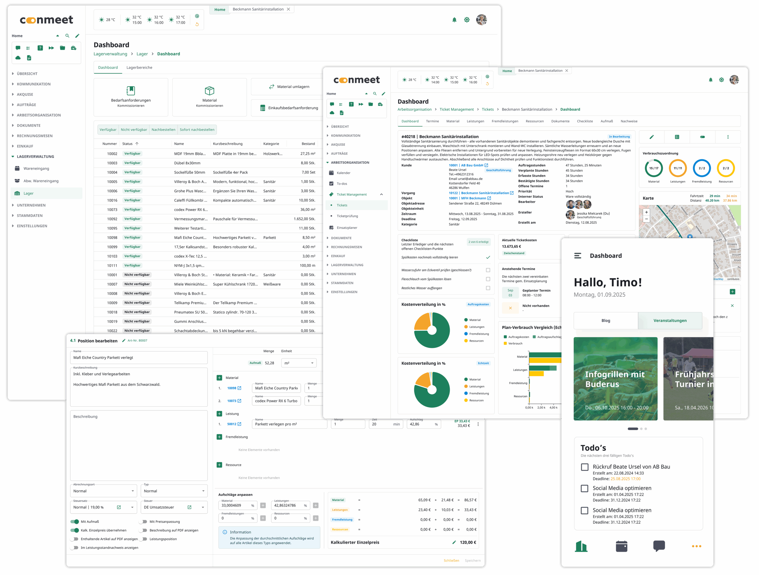 conmeet eliminiert den Software-Flickenteppich in Ihrem Unternehmen. Eine einzige Plattform für CRM, ERP, Projektmanagement, Kommunikation, Banking und Controlling – mit durchgängigen Prozessen von der Anfrage bis zur Abrechnung.