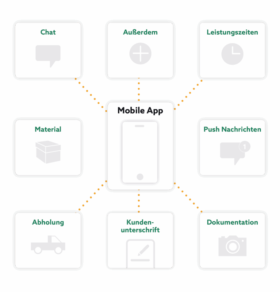 Lösen Sie das klassische Problem spontaner Materialabholungen elegant: Ihre Monteure erfassen Abholungen direkt per App, das Büro verarbeitet sie mit einem Klick – nichts geht mehr verloren oder wird vergessen.