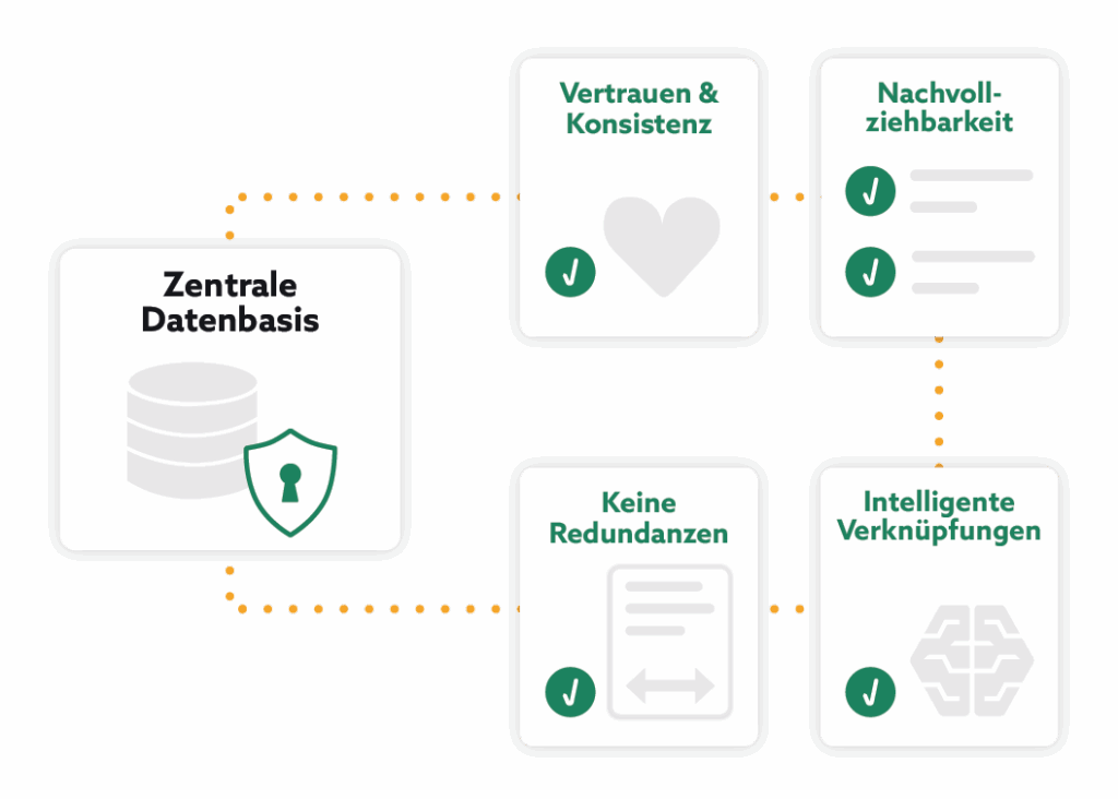 Profitieren Sie von conmeets intelligenter Single-Source-of-Truth-Architektur. Einmal erfasste Daten stehen überall zur Verfügung und sorgen für konsistente Informationen.