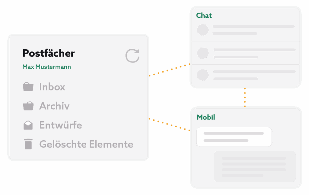 Chat, E-Mail-Client, Projektfeeds, mobile Synchronisation