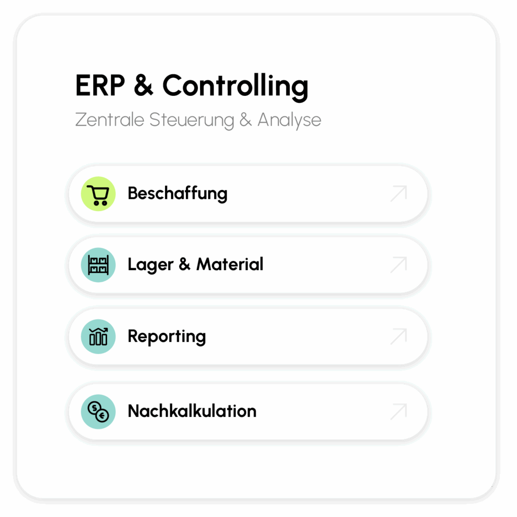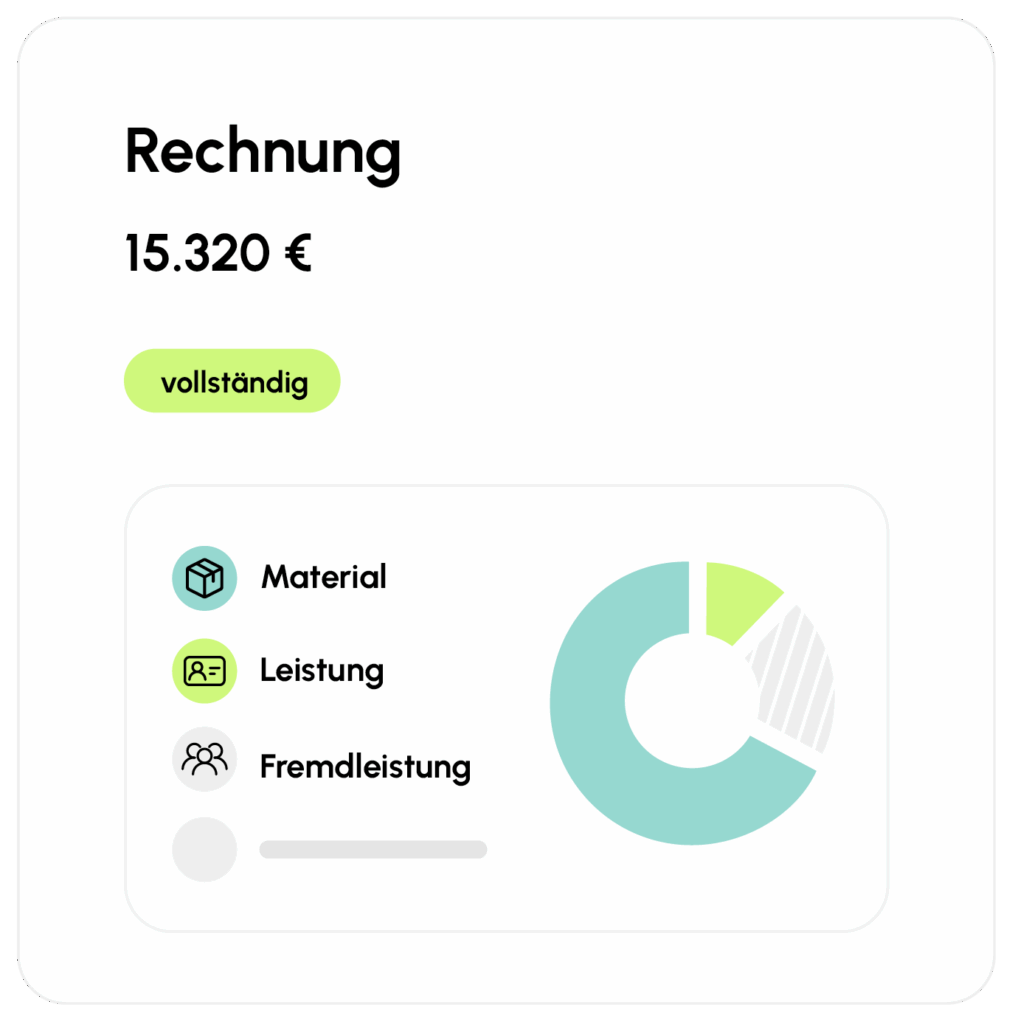 Ihre Mitarbeiter erfassen Leistungszeiten, Materialverbräuche und Aufmaße direkt vor Ort. Diese Daten stehen sofort im Büro zur Verfügung und werden automatisch für Controlling, Nachkalkulation oder Rechnungsstellung genutzt.