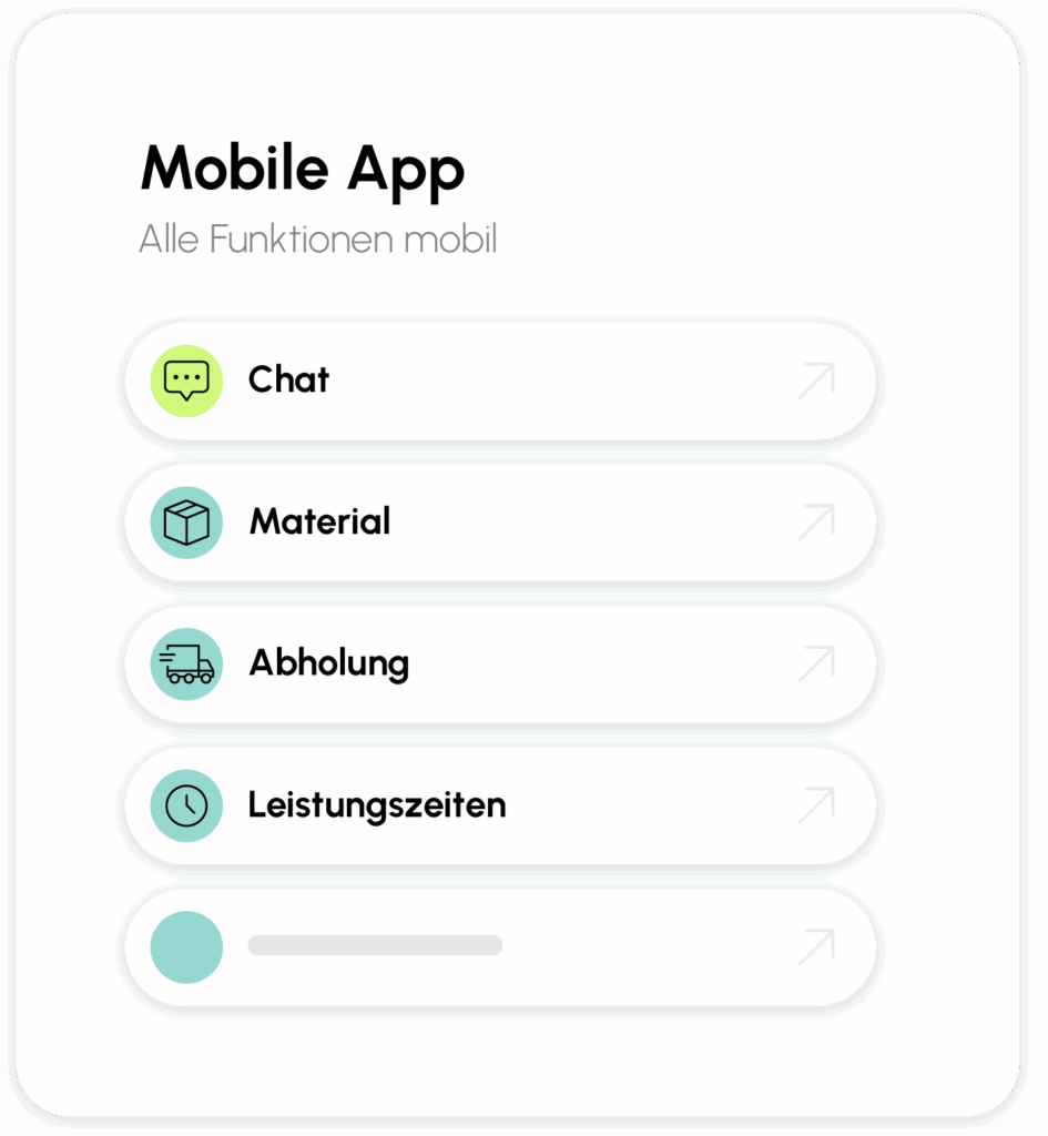 Lösen Sie das klassische Problem spontaner Materialabholungen elegant: Ihre Monteure erfassen Abholungen direkt per App. Das Büro verarbeitet sie mit einem Klick. Nichts geht mehr verloren oder wird vergessen.